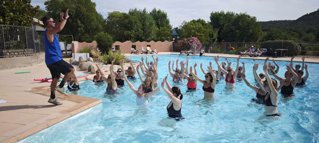 Au Lou Rouchetou, la piscine est bien plus qu’un équipement : c’est un lieu de rencontres et d’échanges. Chaque matin les séances d’aquagym rassemblent les vacanciers dans une ambiance conviviale. C’est aussi l’endroit idéal pour se retrouver après une journée d’activités ou pour prolonger les discussions autour d’un transat.