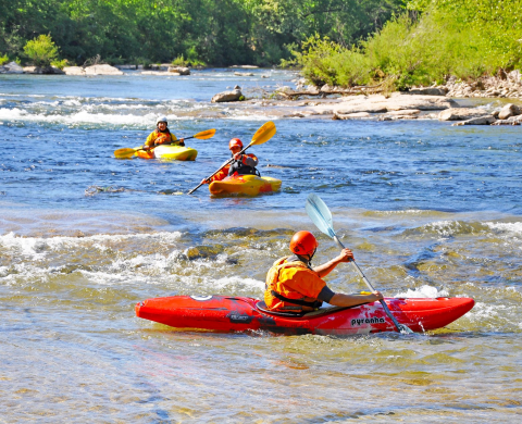 Der Chassezac schlängelt sich zwischen den Kalksteinfelsen hindurch und gräbt sein Bett in eine mineralische und grüne Umgebung. Es ist ein friedlicher Fluss, der sich hervorragend eignet, um mit dem Kanufahren zu beginnen und dabei die bemerkenswerte Landschaft zu genießen. Die Abfahrt erfolgt sanft mit einer insgesamt ruhigen Strömung, so dass die Aktivität auch für Kinder oder Anfänger geeignet ist. Einige kleine Stromschnellen sorgen für Abwechslung, sind aber nicht gefährlich.