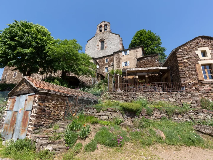 Listed as a Monument Historique, the 12th-century church of Notre-Dame de Thines attracts lovers of Romanesque art and history. Built entirely of schist stone and local marble, it overlooks the valley in a strikingly tranquil setting. Around it, a few stone houses and an inn make up the heart of the village, accessible only on foot from the parking lot below.