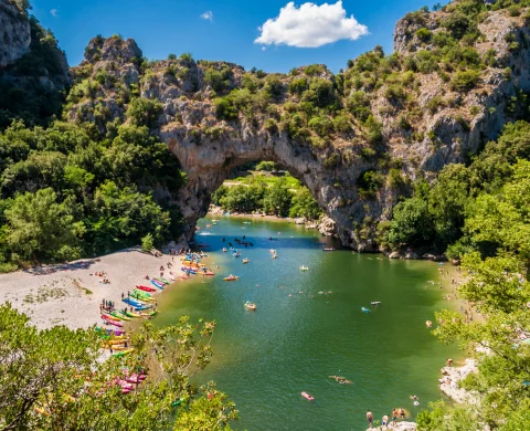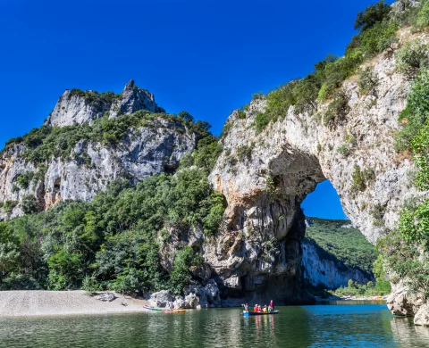 Located some forty kilometers from Camping Lou Rouchetou, Vallon Pont d’Arc is undoubtedly the most emblematic site in the département. Known for its monumental arch sculpted by the River Ardèche, the town attracts travellers in search of spectacular nature, prehistoric history and life-size thrills.