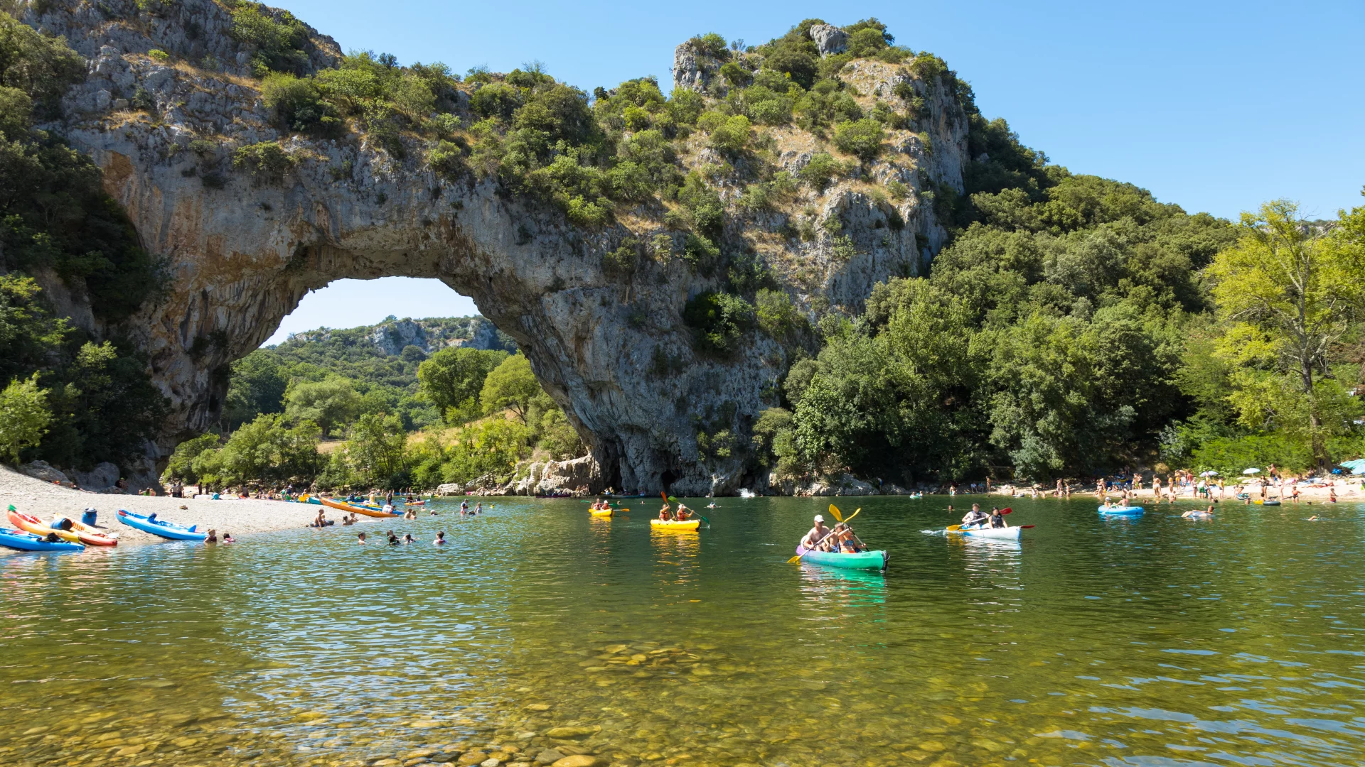 From Camping Lou Rouchetou, it’s a 30-minute drive to Vallon Pont d’Arc. This excursion is ideal for a full day out, combining cultural discovery, relaxation and immersion in spectacular natural landscapes. The route itself is pleasant, passing through typical Ardèche villages and the rolling hills of the south of the department.