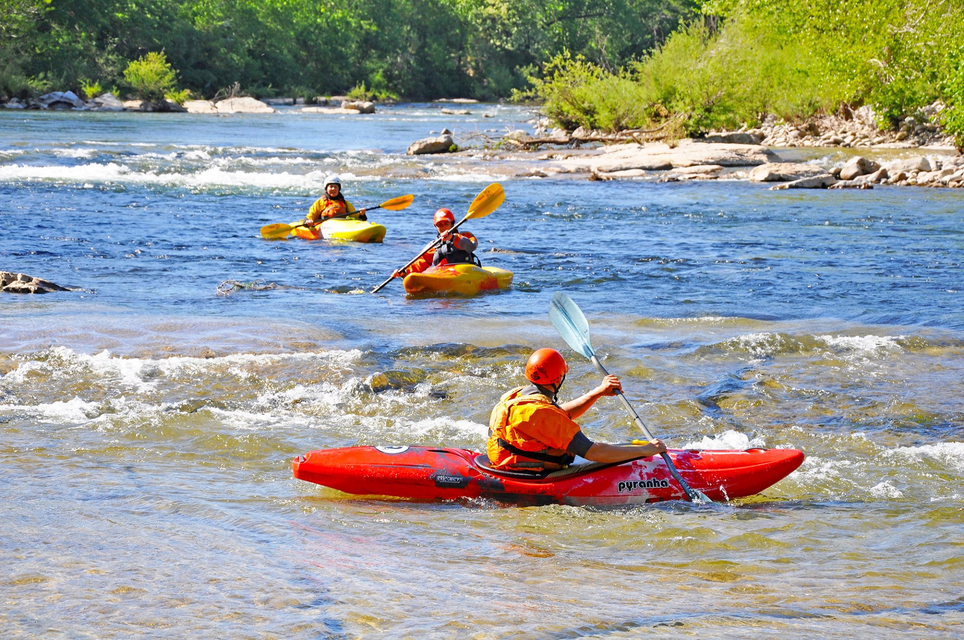Le Chassezac serpente entre les falaises calcaires, creusant son lit dans un décor minéral et verdoyant. C’est une rivière paisible, parfaite pour s’initier au canoë tout en profitant de paysages remarquables. La descente se fait en douceur, avec un courant globalement calme, rendant l’activité accessible même aux enfants ou aux débutants. Quelques petits rapides viennent ponctuer le parcours pour ajouter un peu de piment, sans représenter de danger réel.